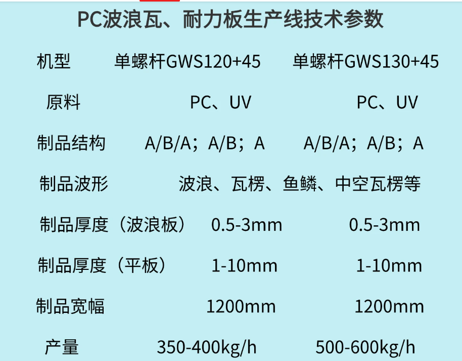 PC波浪瓦、采光瓦生產(chǎn)線