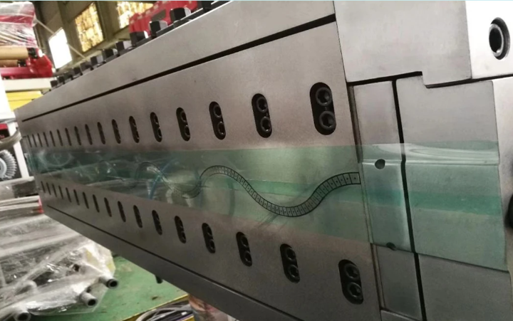 1、衣架式平板機頭,配以氣動開合的定型模,靈活安全的升降機構(gòu),使成型更為可靠,厚度調(diào)整極為方便;